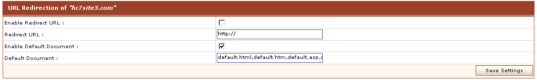 Tick this check box to enable default document for the selected website. A default document tells the web server how to behave when it receives a request for your site that does not specify a specific page. For example, when a web server receives a request for http://yourdomain.com, you can set it to automatically display any document titled default.htm, followed by default.asp, default.html etc., or any other name or type of file you want.