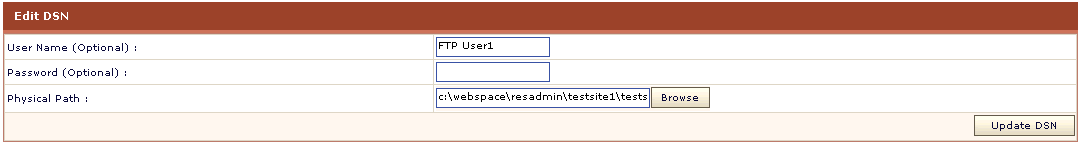 Update the User name, Password and Physical Path as required and click the Update DSN button.
