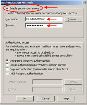 Here set new password for HCAdministrator that you have set while its creation in computer management. Please don't forget to restart IIS after all this.